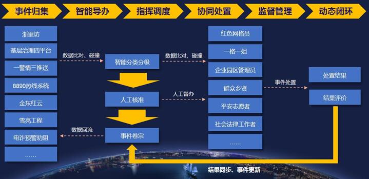 金东区警网融合基层社会治理系统以问题为导向、以业务需求为导向,以数据驱动工作创新,补充落实公安机关“一村一警”工作机制,实现警格与网格的有效融合,强化协作赋能,构建基层治理共同体。坚持“传统+科技”,打好整体智治主动仗,打通数据壁垒,整合各类数据资源,实现力量融合、职能融入、机制融优、系统融接、警民融洽。以完善制度建设,加强技术创新,用数字赋能管理,建立健全工作流程、推送反馈、沟通协调、考核管理机制,打造网格基础工作标准线。达到基层网格各类事件处置更加高效、事件防控预警更加明显、便民服务更加贴心的目标。