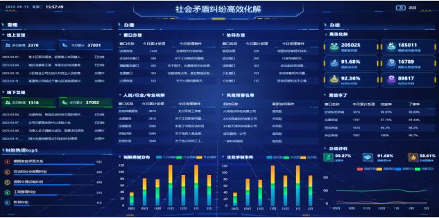 1.全量数据掌握:通过规范数据共享流程、统一治理数据标签、统一保障数据存储和应用安全,归集辖区各部门组织矛盾纠纷数据,为矛盾纠纷多元化解工作提供支撑。通过建设当事人、纠纷事件、纠纷企业等全量数据主题库,实现矛盾纠纷事件及重点当事人、当事企业等信息,底数清、情况明。