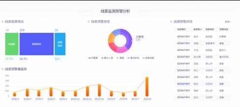 本次项目以线索和案件分析为主线,建立全方位监测预警机制,基于预警分析模型,在大量待核实线索中,挖掘出线索涉警情、涉重复举报、涉案情况,同时对潜在的高成案风险线索、高风险机构、重点人员进行精准快速识别预警,辅以画像分析,对重点线索、人员、机构进行全方位、立体化查看,降低线索排查难度,提高线索排查工作质效;