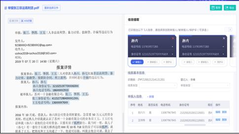 通过大数据与实体识别技术融合,平台提供智能辅助应用,能够在众多信息资源中对线索价值自动评分,辅助工作人员辨别情报价值,同时该项技术可服务于各个专项的信息高效提取筛查,减轻工作人员情报筛查处理工作负担,大幅提高办案效率。