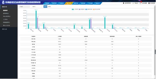 主要针对数据类型、事件类型、重点人员等分地域、分时间进行呈现。包括基础数据分析和业务数据分析两大方面。综合统计,对人员、房屋、建筑物、单位/组织按照行政区划进行数量统计,从宏观进行把控;人口统计,包含年龄段、政治面貌、受教育程度、民族构成、宗教信仰等等各类人员属性的数据分析,以分析图等形式从不同角度来表达,更加直观、形象;建筑物统计,根据房屋的各种属性进行数据分析,包含房屋性质、房屋面积、房屋用途等;单位/组织统计,根据单位/组织的各种属性进行数据分析,包含单位/组织类型、性质、行业、规模等;按不同区域、时间、事件类别、处理对象、事件来源等属性进行业务数据分析统计。