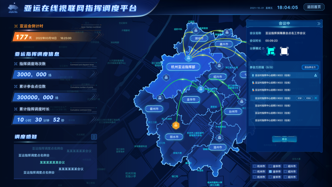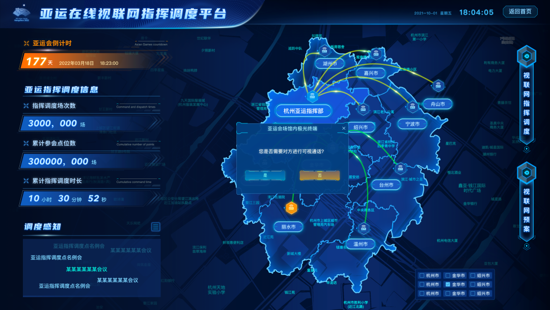 同时,视联网还利用建成的全省雪亮工程100余万路监控资源,精确、全量地提供亚运期间场馆、亚运路线、交通道路、驻地等视频监控。亚运期间,视联网指挥调度平台将成为全省应急指挥的重要组成部分。