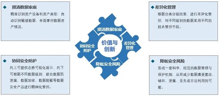 数据分类分级是数据采集安全过程域的第一个基本实践,也是开展数据生命周期安全管理的第一步,启明星辰集团作为《GB/T 37988-2019 信息安全技术 数据安全能力成熟度模型》标准的起草单位,将充分发挥自身的深厚经验与技术优势,助力各组织单位开展数据安全治理管控工作,为释放数据价值保驾护航。