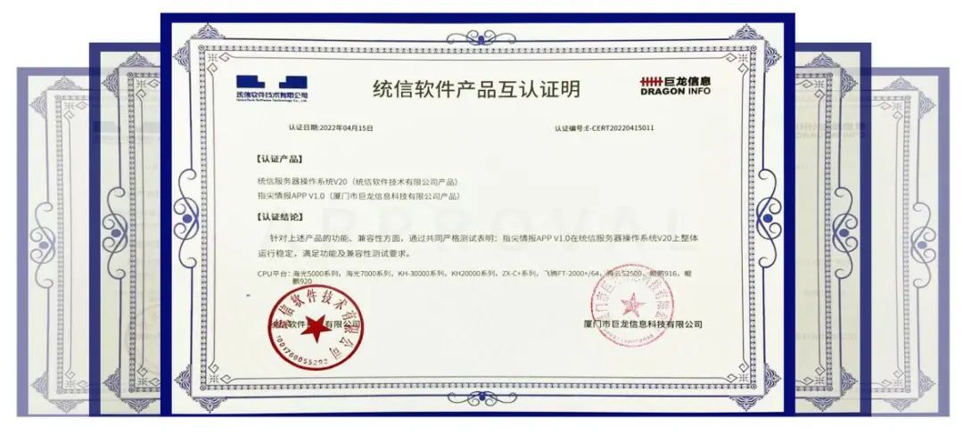 近日,巨龙信息自主研发的巨龙信息自主研发的智慧情指体系产品,包括智能联勤指挥系统、合成作战系统、智能感知系统、线索核处系统、指尖情报APP等等,通过了统信服务器操作系统UOS V20产品兼容性认证测试,统信软件公司向巨龙信息颁发技术认证证书,并将巨龙信息纳入统信服务器操作系统V20产品生态伙伴。