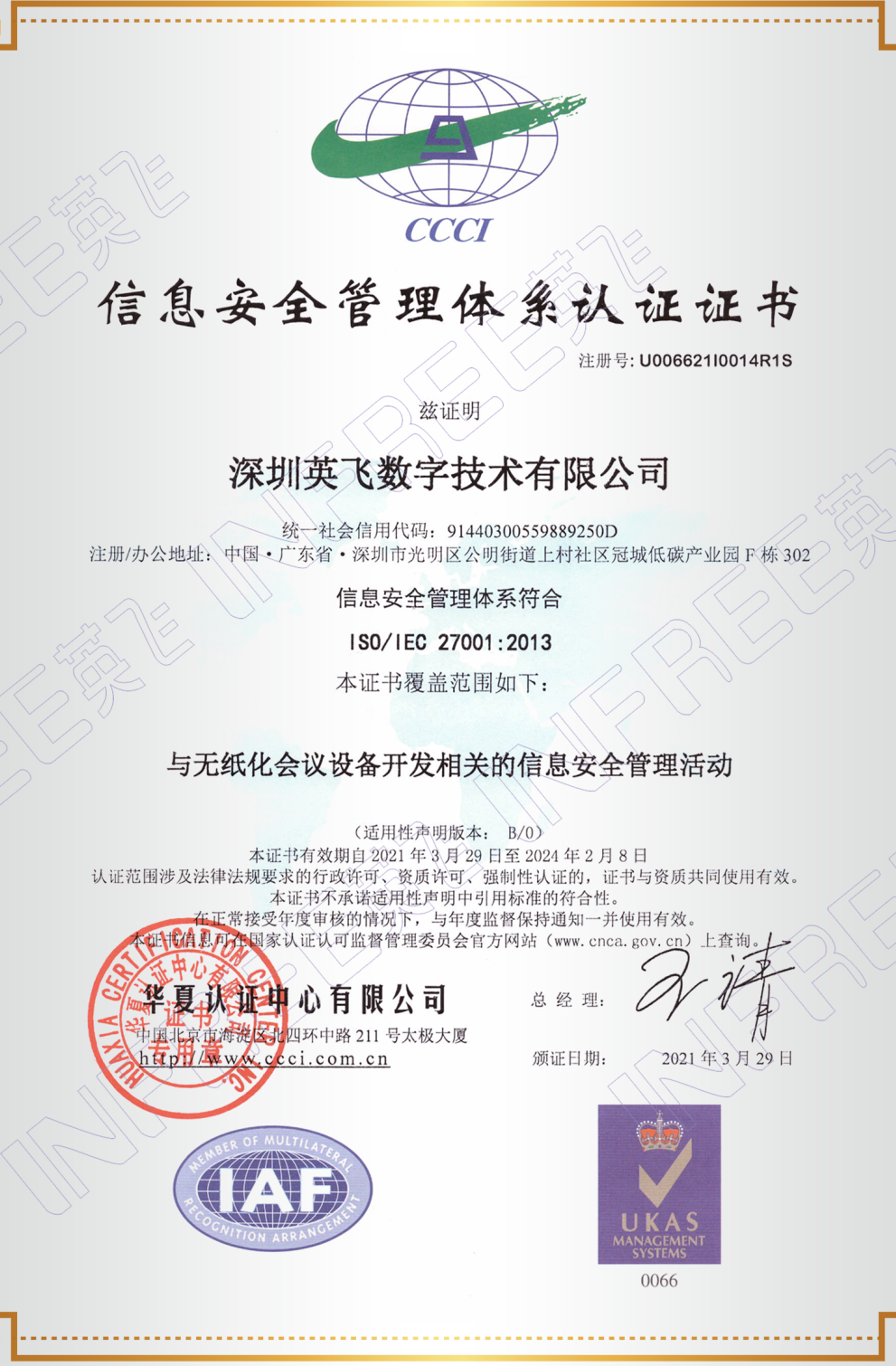 信息技术应用创新发展是目前的一项国家战略,英飞研发团队历经十多年来紧随国家发展的步伐,心系保障国家经济安全、国防安全的强烈意识,研发出适配飞腾芯片麒麟系统、兆芯芯片统一系统的无纸化会议系统,实现单一系统部署到跨平台交互式应用。对涉密会议系统分级保护管理,通过软件信息手段,实现涉密会议分级保护,严防信息泄露。保守机密,慎之又慎。