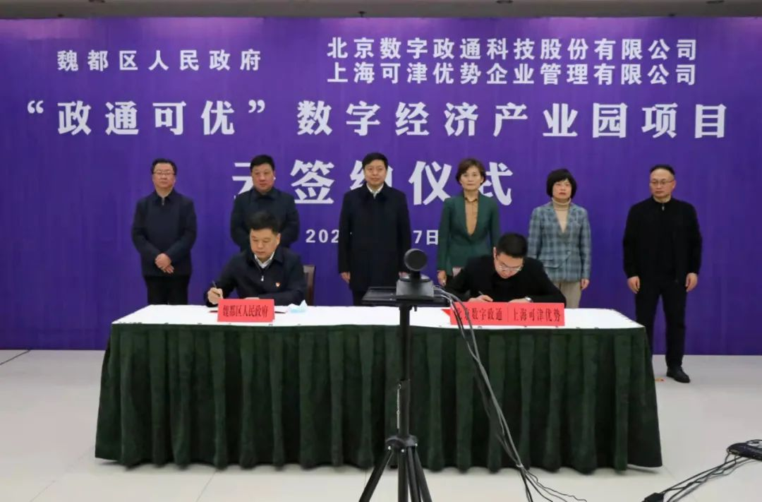 1月27日,数字政通、许昌市魏都区人民政府与可津优势举行“政通可优”数字经济产业园项目云签约仪式。为全面落实国务院“十四五”数字经济发展规划,促进许昌数字产业园经济的发展,完善和推进数字产业体系,促进区域产业集聚升级,数字政通着眼于发挥魏都区的许昌区位及政策、资源优势,利用数字政通的智慧产业优势、可津优势在产业园方面丰富的建设及运营管理经验、优势资本产业投资优势及成功运作经验,各方计划共同打造集“产业集聚、产城融合、资源共享、产融互动”等诸多业态为一体的产业新城。