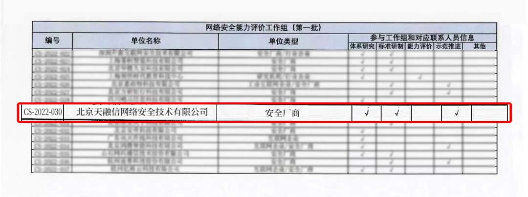 近日,由工业和信息化部网络安全管理局指导,中国信息通信研究院牵头的“网络安全能力评价工作组”正式成立,天融信成功入选首批成员单位,将参与体系研究、标准研制和示范推进三项子工作组的相关工作,共同推进网络安全能力评价相关的研究。