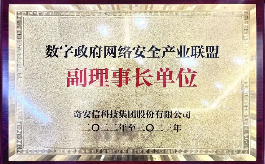 5月12日,数字政府网络安全产业联盟理事会议暨首批理事单位授牌仪式在广州举行,奇安信获选为联盟副理事长单位。