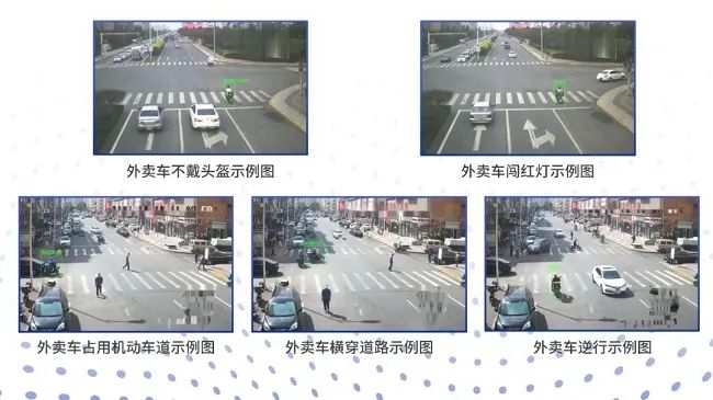 全面覆盖:对视频图像进行智能分析,支持检测高速公路、城市道路场景下的机动车、非机动车、外卖车、行人等多种交通元素,实现了机动车违反禁止标线、机动车占用非机动车道、机动车逆向行驶、机动车不按导向线行驶、机动车连续变更车道等30种违法违规事件检测,对目前影响交通安全的主要违法违规现象做了全面覆盖。