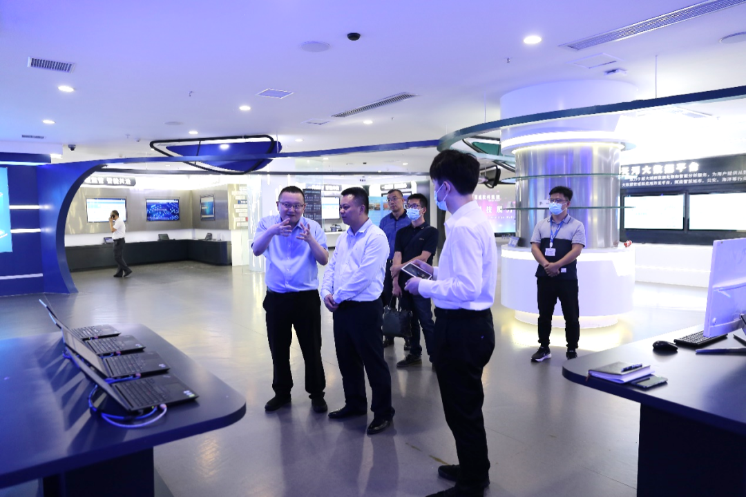 5月25日下午,漳州市信息产业集团董事长沈海石、漳州电子信息集团副总经理黄铭勇、漳州市信息产业集团综合部徐凯攀一行莅临南威软件集团泉州总部参观交流。南威软件集团党委第一书记、董事长吴志雄,集团监事会主席、副总裁陈周明,助理总裁郑开胜接待了参观团一行,并陪同参观集团企业文化展厅及现代治理科技展厅。
