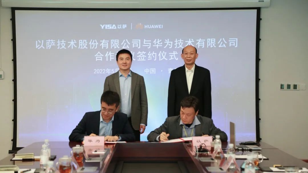 022年5月16日,以萨与华为在青岛签署合作框架协议,双方将基于昇腾AI基础软硬件平台打造人工智能联合解决方案,共同推进人工智能产业繁荣发展,加速智慧城市智能化转型。华为昇腾计算业务副总裁刘鑫、以萨副总裁姚巍代表双方进行签约,华为公司副总裁、计算产品线总裁邓泰华,以萨总裁李凡平出席并共同见证签约仪式。