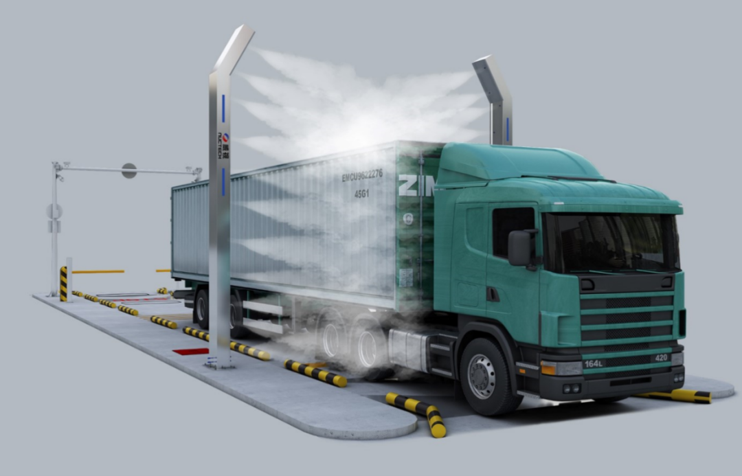 这是同方威视的智能口岸雾化消毒系统,它改变了传统人工消杀模式,效率更高、覆盖更全、喷洒更均匀,实现了“即来即走”“无人值守”,避免了车辆堆积拥堵,加快了车辆、货物的通行效率。