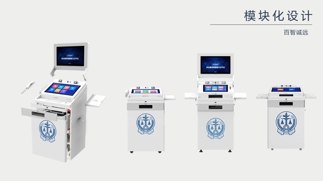 基于此,百智诚远研发了该多功能模块化司法服务自助终端,功能全面,且支持后台自主配置。