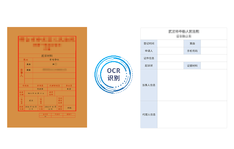 本发明设计精巧、维护简便,综合高拍仪与OCR智能回填技术于一体,可以随时拍摄纸质证明、证件原件等材料来实现同步电子化,同时OCR识别技术自动进行图文转换,提取案件要素信息,回填至系统中需要输入的区域,回填信息支持自助修改。