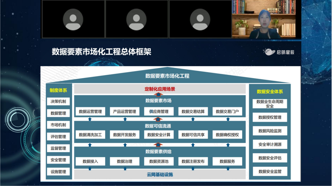 会上,启明星辰集团数据安全事业部副总经理张妮以“推进‘数利’基础设施建设,打造临港新片区数据绿洲”为主题为大家带来分享,从支撑数据要素市场化发展的角度看数据治理的重要性,并依据“数利”工程阐述的实践路径,着重强调了数字基础设施的构建且需以其作为支撑和制约数据要素的重要设施,保障数据要素可以安全、顺畅地持续流通。