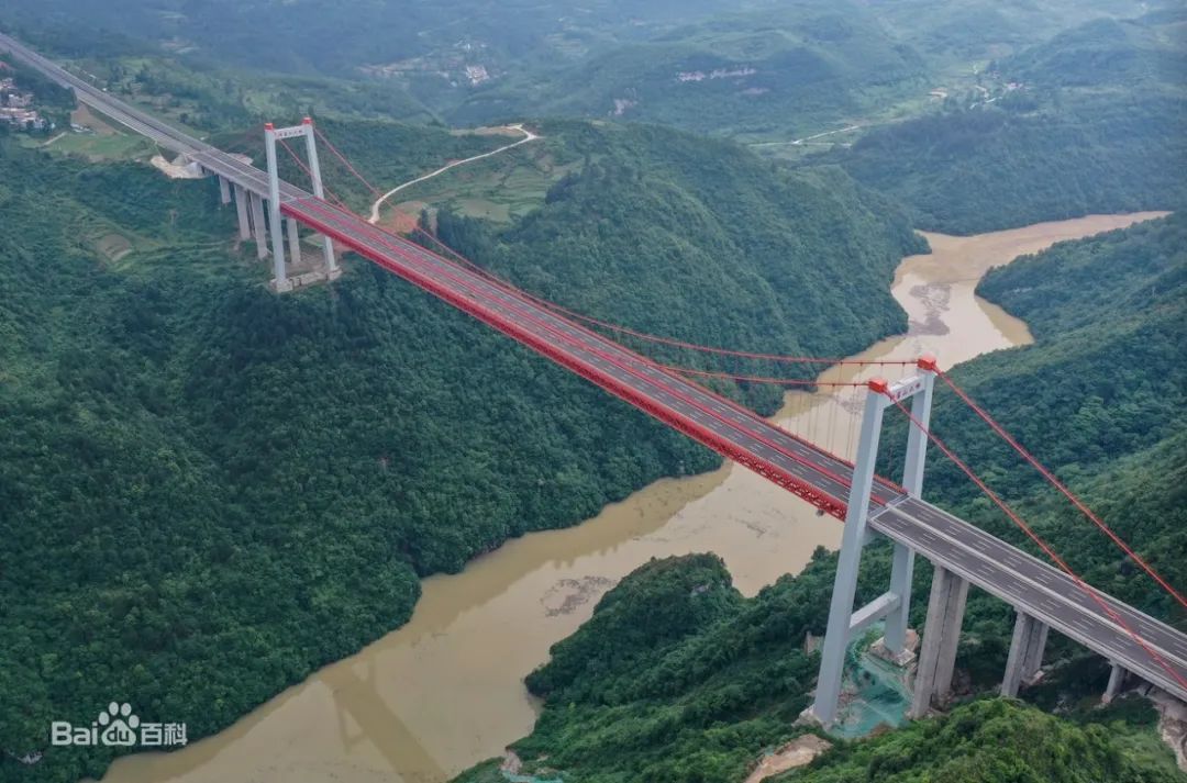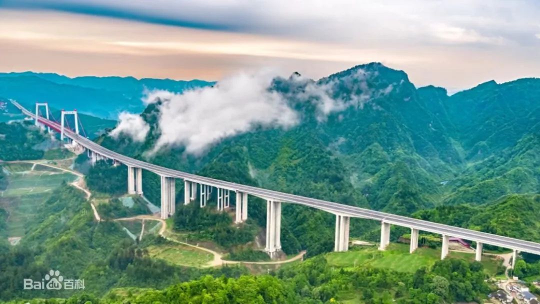 “轻舟已过万重山”正是贵黄高速的真实写照。贵州是典型的喀斯特地貌,地无三尺平,贵黄高速全线贯穿地势险峻、地质复杂的山川河谷,控制性工程包括“三桥四隧两互通”,建设难度极大,其中阳宝山大桥为主跨650米的悬索桥,所处的独木河大峡谷附近几乎无路可通,是我国首次采用空中纺线法架设主缆,创造了行业纪录。