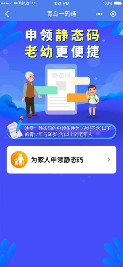 近日,“青岛一码通”新推出了“静态码”这一重要功能,服务对象为60岁(含)以上无智能手机的老人及16岁(不含)以下的青少年儿童,可通过提交申领人正确身份信息,替家人申请“静态码”。申领成功后,可进行“静态码”的打印,便于使用人员在无智能设备情况下的亮码操作;进出各类公共场所时,只需检测员反向扫一扫,即可完成通行。“静态码”的有效期为180天,过期后无法正常使用,可以点击“刷新静态码”重新申请,原来的即时作废。“静态码”在一定时间限度内满足老人和孩子出行、办事需求。