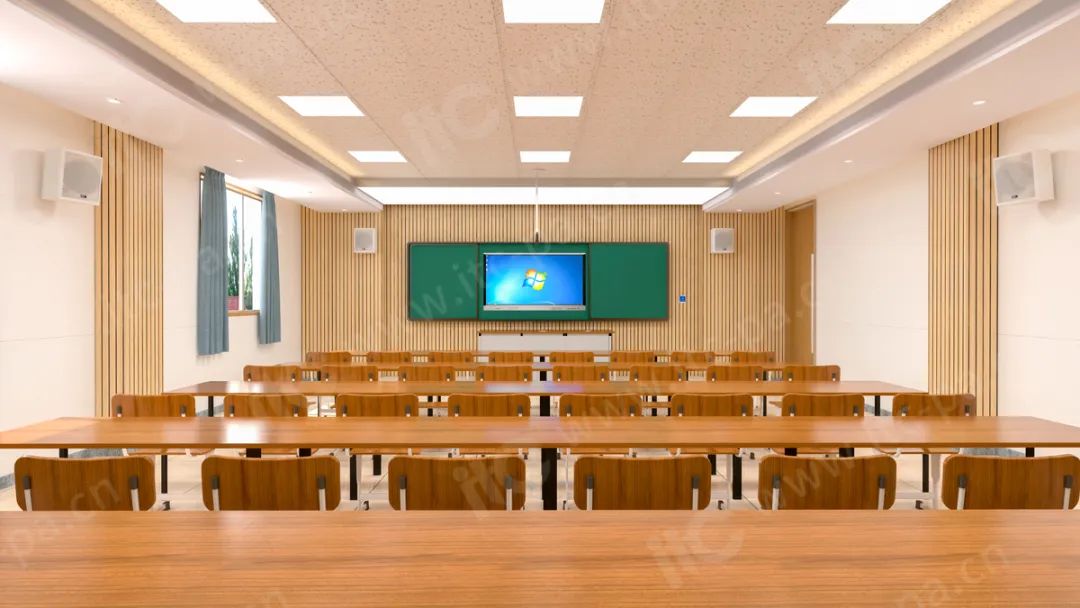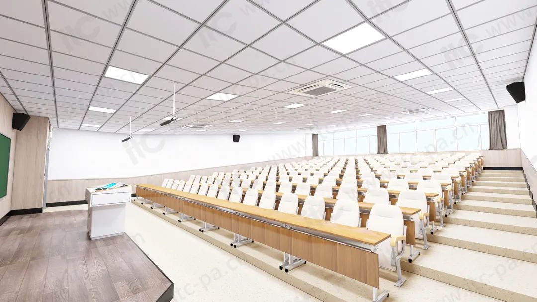 系统内置AFC、AGC、AEQ、ENC等多种音频处理算法,拾音距离远,实现环境声降噪、一键声场检测等功能;为了控制辐射指向性,尽量减少声波回授,选用指向性强的音箱设备,再通过对音箱摆放位置的精确计算,使教室的任何位置的音量保持一致,授课者只需轻声讲解,声音即可覆盖教室各个角落,实现高清晰、高还原、无啸叫的扩声效果。