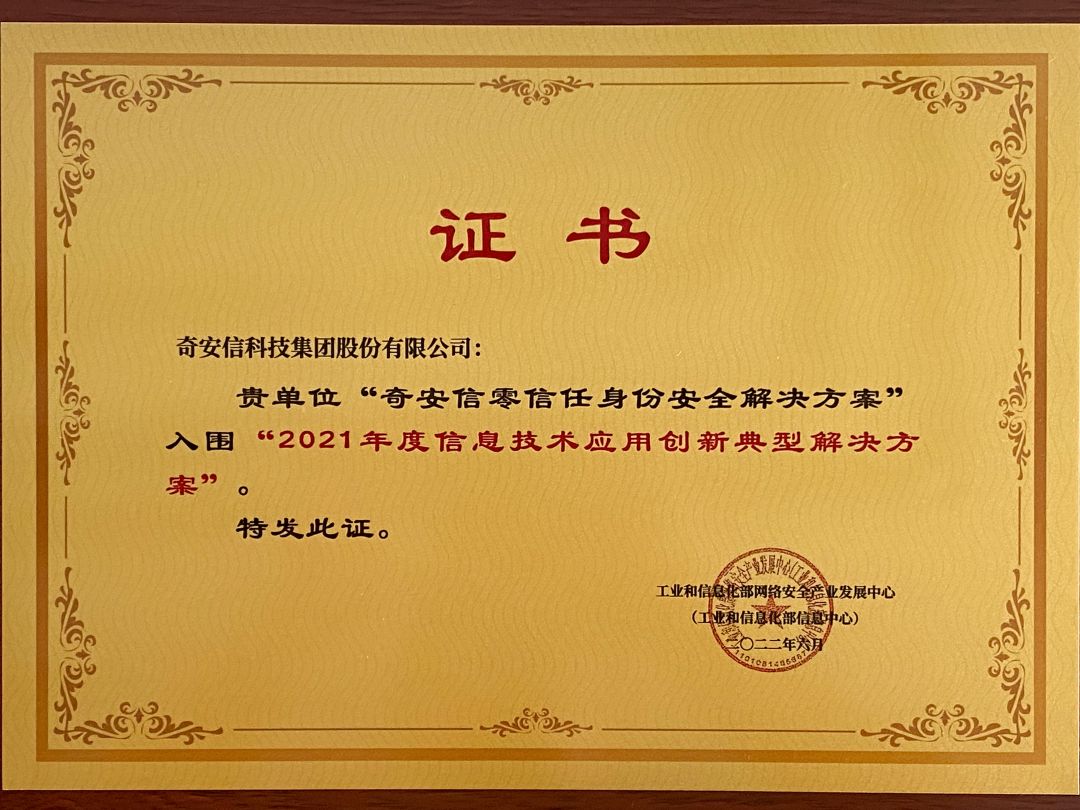 6月23日举办的2022新一代信息技术融合应用创新云峰会上,奇安信提报的“奇安信零信任身份安全解决方案”,入选2021信息技术应用创新典型解决方案。