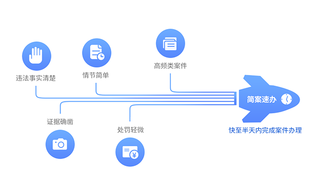面对市场监督案件流程长、复杂化、多元化等问题,简案速办系统以特定高发、微小案件切口,强化该类案件的快速治理,实现了案件的繁简分流。