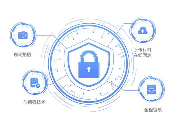 基于区块链技术的电子存证,系统支持现场拍摄、上传的证据材料在线固定。利用时间戳技术,防止证据被篡改或伪造并全程留痕,保证电子证据的法律效力。