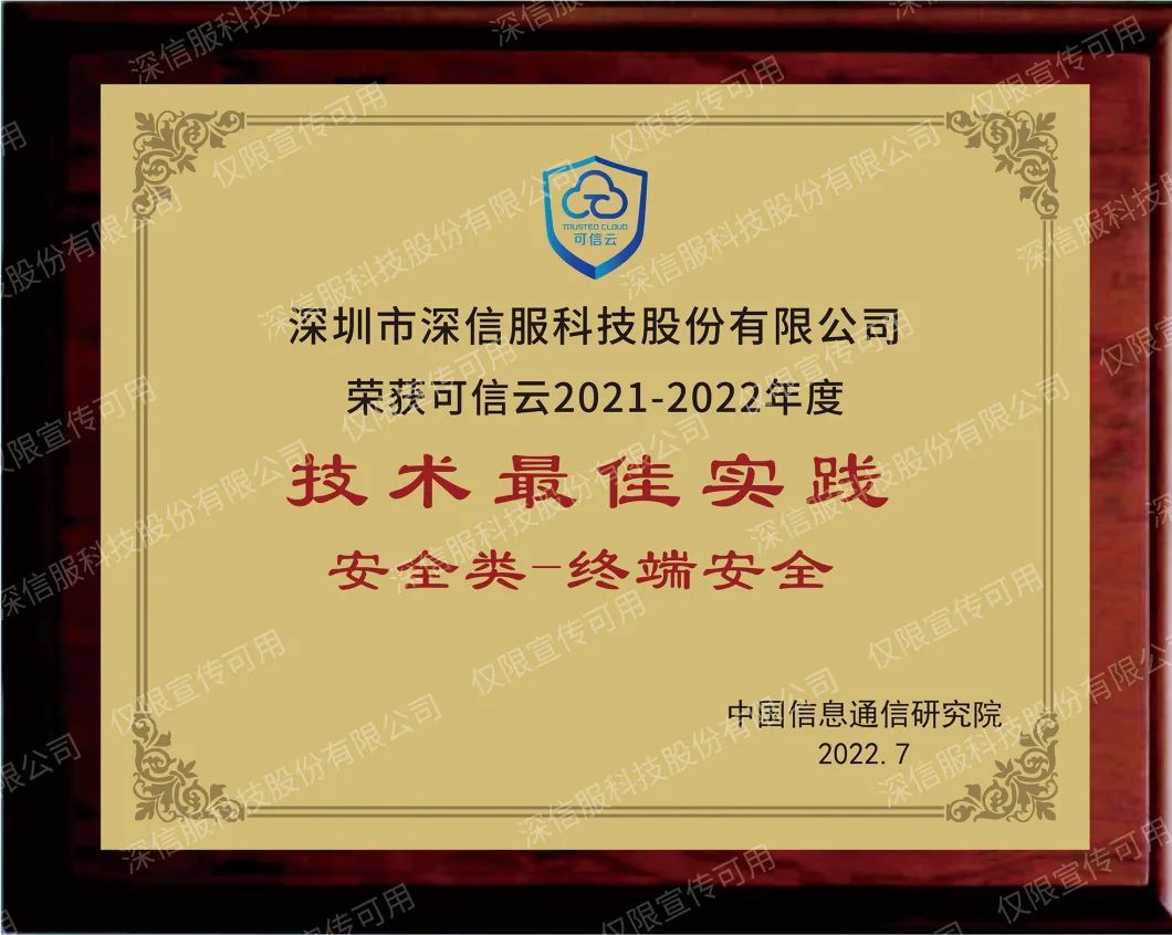 3.深信服SaaS-EDR荣获2021-2022可信云技术服务最佳实践(安全类)