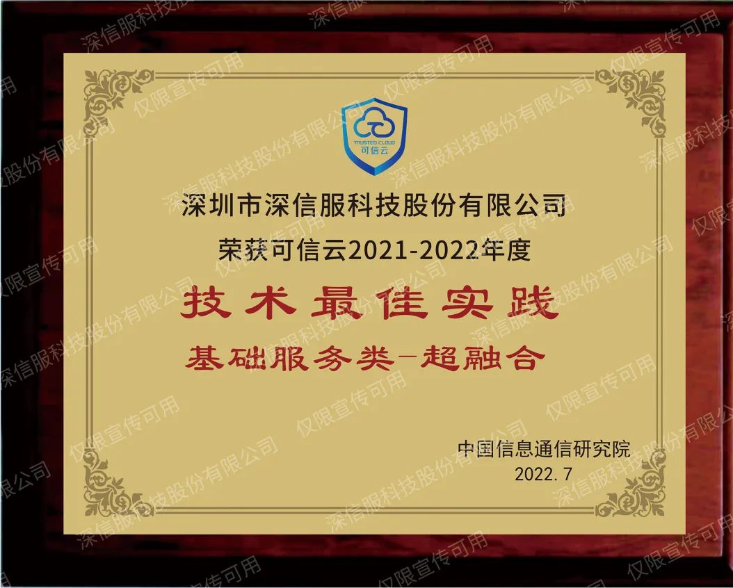 2.深信服超融合荣获2021-2022可信云技术服务最佳实践(基础服务类)