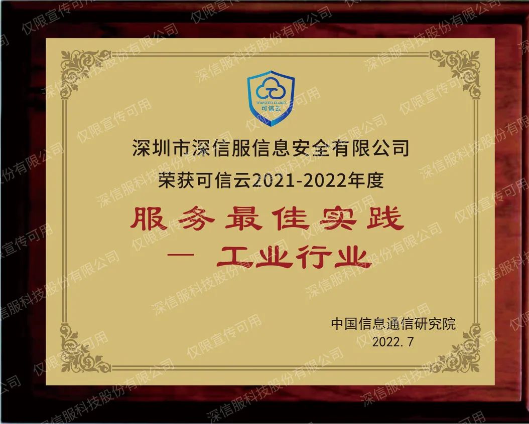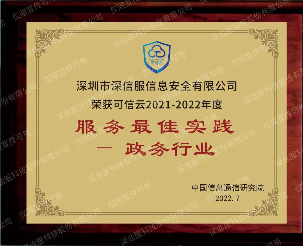 4.深信服政务网络安全托管服务MSS荣获2021-2022可信云年度服务最佳实践(政务行业)
