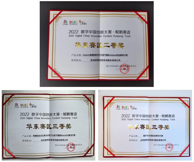 2022数字中国创新大赛·鲲鹏赛道初赛于4月在福州揭幕,大赛从作品的国产支持、核心技术、功能体系等多维度进行评审,安恒信息的3款产品解决方案从160支队伍中脱颖而出,获得华东赛区决赛的晋级资格,分别为:AiLPHA大数据智能安全平台基于鲲鹏Validated的金融解决方案、国产化主机安全解决方案(EDR)、明御综合日志审计分析平台基于鲲鹏BoostKit解决方案。