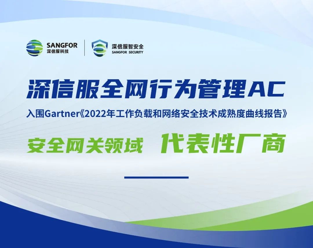 近日,全球权威咨询机构Gartner发布了《2022年工作负载和网络安全技术成熟度曲线报告》(2022 Gartner® Hype Cycle™ for Workload and Network Security Report,以下简称:报告),深信服凭借全网行为管理AC,在安全网关(Secure Web Gateways,简称SWG)领域被列为代表性厂商。