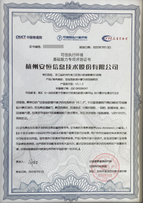 安恒AiLand数据安全岛是国内领先的隐私计算产品,2021年6月就已通过中国信通院区块链辅助隐私计算基础能力测评,今年6月再次通过中国信通院可信隐私计算可信执行环境基础能力测评。目前安全岛累计获得中国信通院、国家密码管理局、公安部网络安全保卫局等权威机构10多项测评认证,在BDTee大数据可信执行环境、MPC多方安全计算和联邦学习3个隐私计算方向都形成了成熟的商用软件。提供一整套基于数据要素全生命周期加密、区块链、隐私计算、BDTee(大数据可信执行环境)、数字验签和全业务流程追踪审计技术,实现共享数据的所有权和使用权分离,确保原始数据的“可用不可见、可用不可取”,保障数据共享交换过程的可靠、可控和可溯。自2019年诞生以来,取得了优秀的成绩,得到了公共数据、金融、公益、医疗、教育等众多领域的认可。在同类产品中,安全岛也是唯一具备销售许可证的产品,为打破数据孤岛,实现数据价值构筑安全屏障。