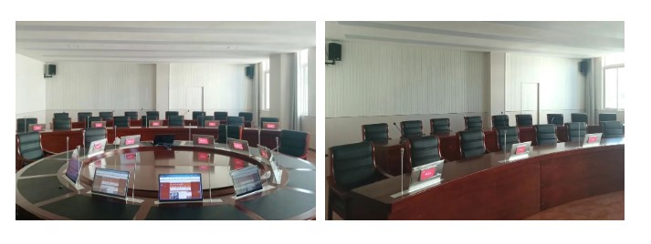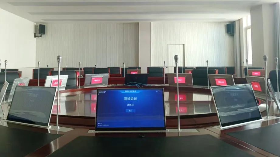 搭配带电子桌牌的无纸化升降终端,直观展示参会者信息,提升会议体验,为人民法院打造绿色会议。