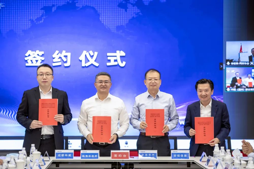 千年商港,幸福温州。为推动中国(温州)数安港打响品牌,迈入发展快车道,10月14日,中国(温州)数安港建设现场会召开,温州市委副书记、市长张振丰出席会议并发表讲话,强调要坚持“立足瓯海、辐射全市、服务全省、影响全国”目标定位。会上,温州市瓯海区政府与中国软件行业协会、中国网络空间安全协会、成都申威科技、安恒信息等四家组织单位签署合作协议,就参与数安港建设和数据要素市场化配置改革达成战略合作,安恒信息董事长范渊参与本次签约。