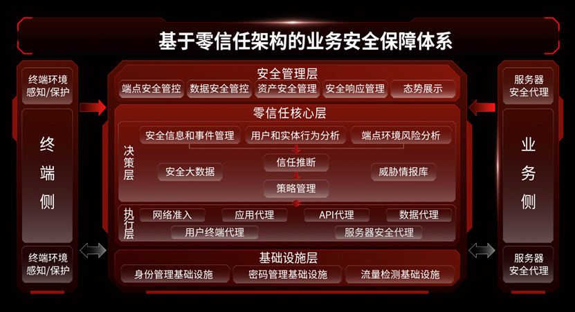天融信零信任产品体系囊括控制平面和数据平面的全产品系列,可满足当前完整零信任体系建设的需求。产品具备身份管理、终端环境感知、用户行为分析、数据分级分类、威胁情报解析、信任推断、动态访问控制等能力,为客户业务访问各环节中的业务数据安全提供零信任安全防护。
