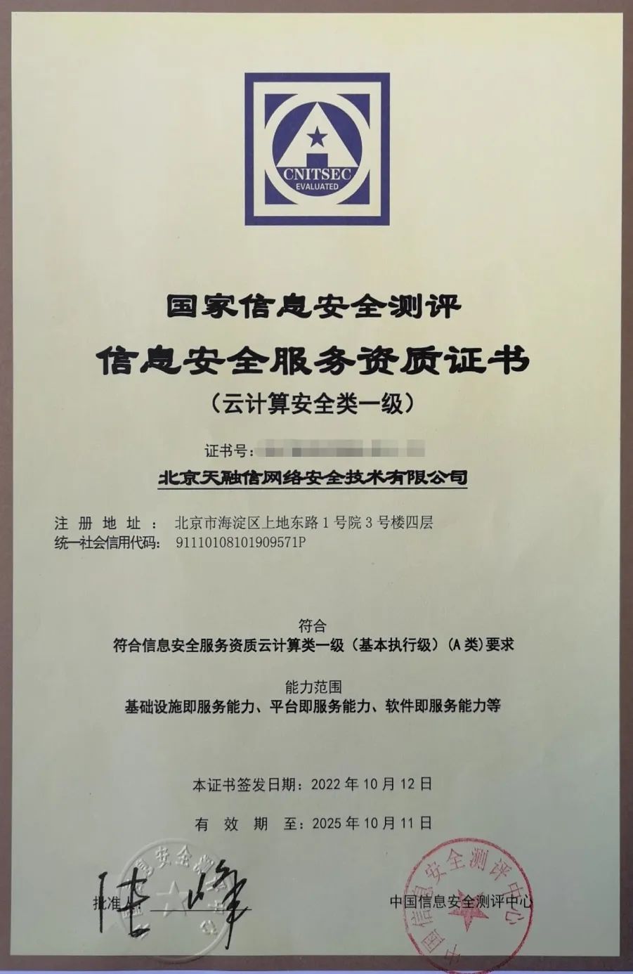 信息安全服务(云计算安全类)资质是中国信息安全测评中心推出的,依据《信息安全服务资质评估准则》,对云计算安全服务提供者的资格状况、技术实力、云计算安全服务能力、云计算安全服务项目的组织管理水平和实施过程质量保证能力等方面的具体衡量和综合评价。