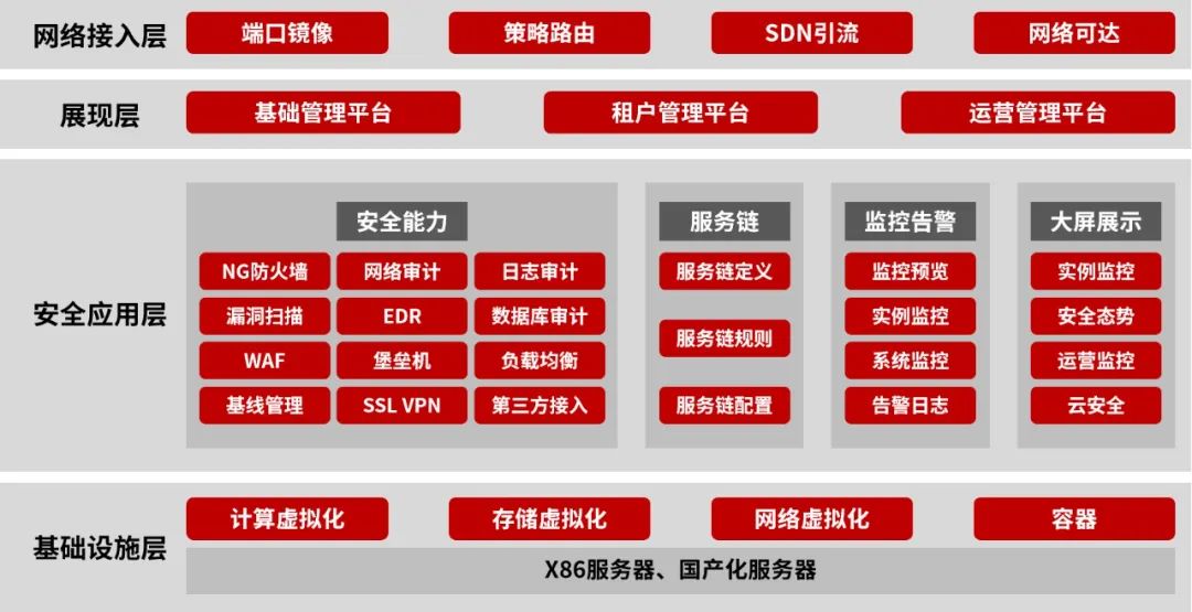 天融信可通过云安全资源池以及安全服务的结合,为客户建设从点到面,涵盖边界、虚拟化、主机、应用的全方位防护体系,持续保障云环境安全。