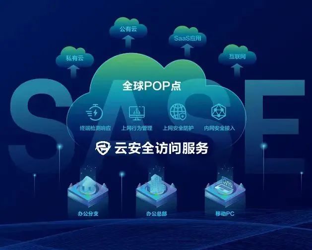 为适应该变化,深信服于2020年率先推出基于SASE模型的云安全服务平台——深信服SASE方案,为组织构建云时代下“无处不在”的安全防护体系。