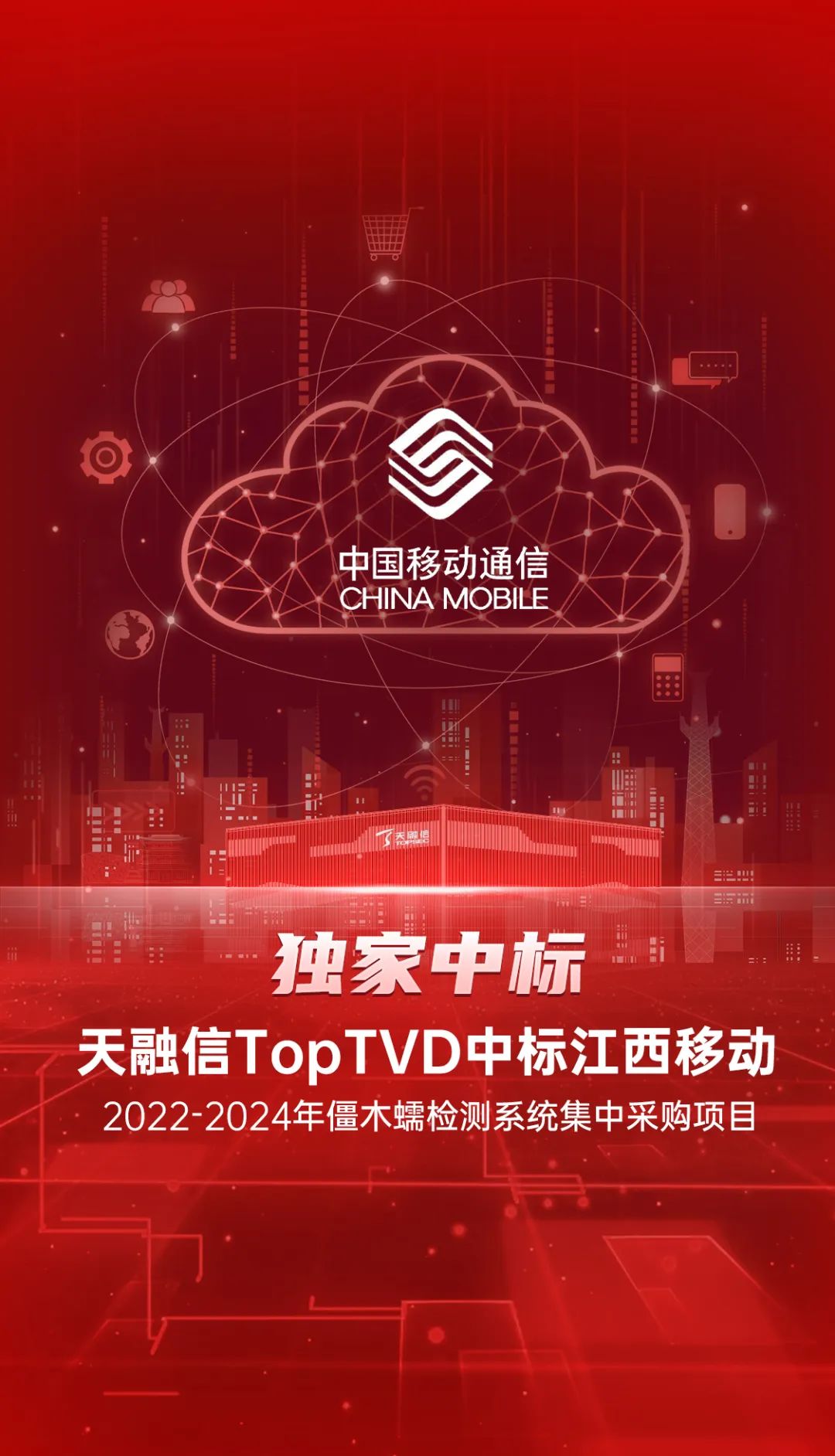 近日,中国移动采购与招标网发布江西移动2022-2024年僵木蠕检测系统集中采购项目结果,天融信僵尸网络木马和蠕虫监测与处置系统(简称TopTVD)独家中标。此次是继中国联通集采项目后,僵木蠕产品在运营商行业的又一次重要实践,充分彰显了天融信强劲的网络安全综合实力!
