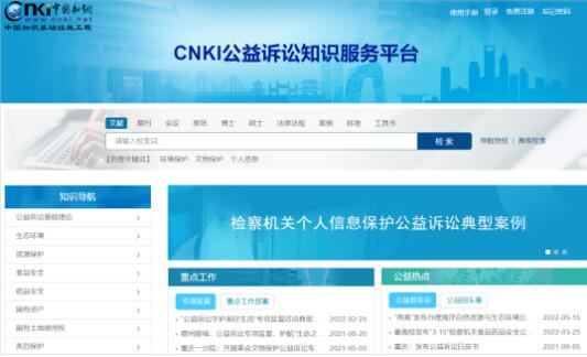 “CNKI公益诉讼知识服务平台”甄选生态环境、资源保护、食品药品安全、英烈保护、国有财产保护、国有土地使用权出让、个人信息、安全生产等重点领域的前沿理论、法律法规、案例、标准、工具书等知识,为重点领域公益诉讼案件办理提供知识参考。