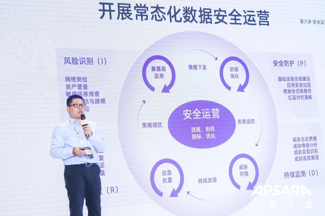 他在发言中提出:数据安全合规治理的应分六步走的思路,通过PDCA循环,持续优化安全策略、扩展业务场景,让安全更好地赋能业务。伴随数据的采集、传输、存储、处理、交换等等场景。