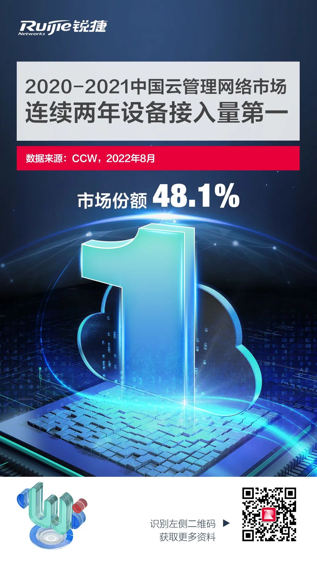 计世资讯《2021-2022年中国云管理网络市场研究报告》的数据显示,在2021年中国云管理网络市场,锐捷网络WIS云管理网络解决方案(以下简称WIS云网)以48.1%的接入量位列市场份额第一,这也是WIS云网第二次问鼎云管市场第一,意味着锐捷网络成为了中国云管理网络赛道名副其实的领跑者。