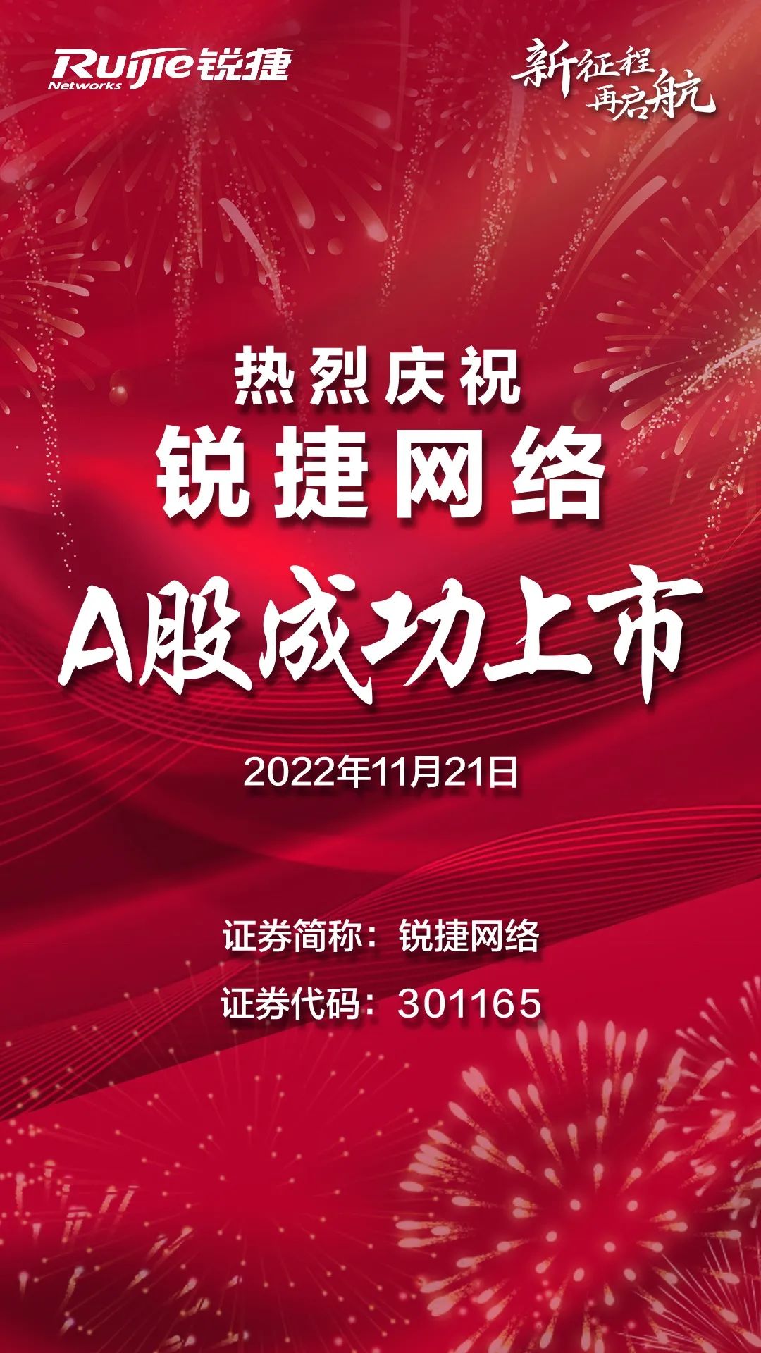 2022年11月21日,锐捷网络股份有限公司(证券代码:301165,下称“锐捷网络”)在深圳证券交易所创业板上市。