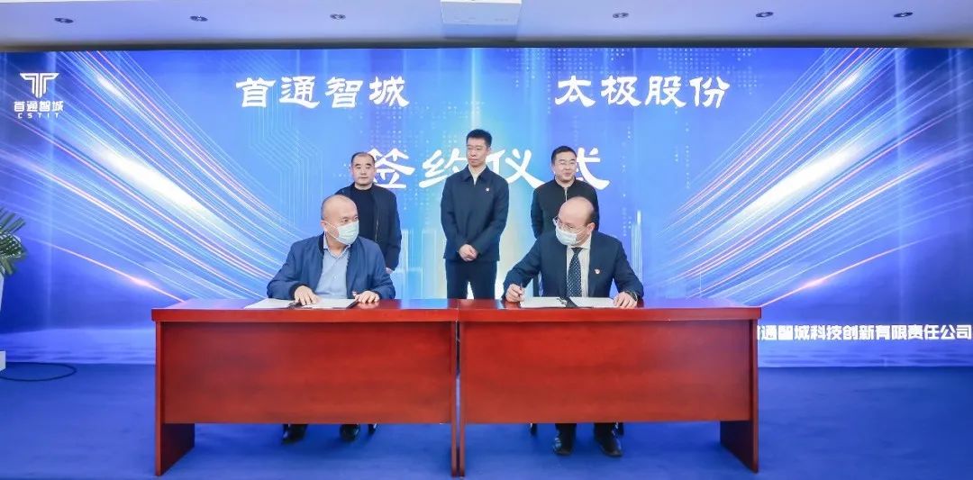 近日,太极计算机股份有限公司(以下简称“太极股份”)与首通智城科技创新有限责任公司(以下简称“首通智城”)签署战略合作协议,双方就北京城市副中心智慧城市、大数据、城市大脑数据中枢等业务领域展开全面合作,积极落实城市副中心智慧城市建设总体部署要求。太极股份高级副总裁柴永茂、首通智城总经理胡仁志代表双方签署了战略合作协议。