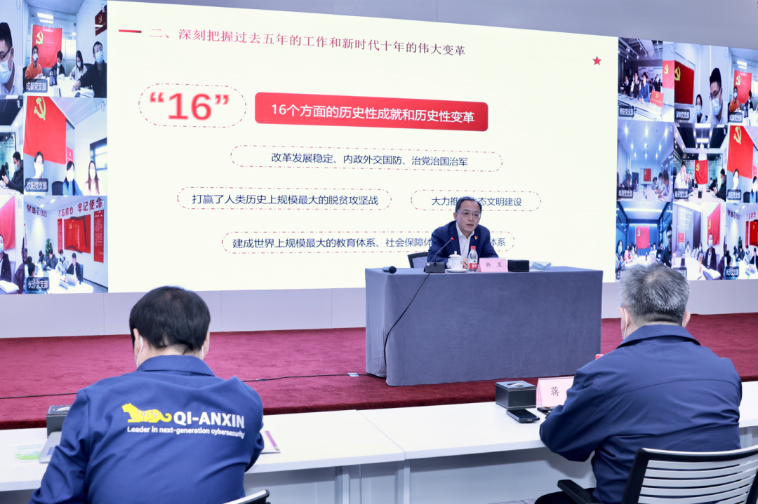 齐向东强调,奇安信要不断深化党委委员对二十大精神的深入学习,动态调整学习计划。一方面,面向集团高层,建立二十大精神线上学习班,分阶段推进学习;另一方面,针对分布在全国各地的党支部,建立学习专班,反复学习、深刻领会、重点讨论,深入领会二十大报告精神。