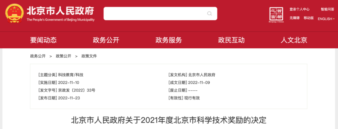 “北京市科学技术奖”是北京市人民政府设立的奖项,包含自然科学奖、技术发明奖、科学技术进步奖。2021年度总计149个项目成果荣获北京市科学技术进步奖,其中37项成果荣获北京市科学技术进步奖一等奖,112项成果荣获北京市科学技术进步奖二等奖。该奖项重点奖励为建设国际科技创新中心作出贡献的科技工作者和科技成果,旨在深入落实创新驱动发展战略,推动北京市加快打造世界主要科学中心和创新高地。其中,科学技术进步奖是在聚焦关键技术创新应用以及支撑北京市重点领域发展成果方面而设立的。