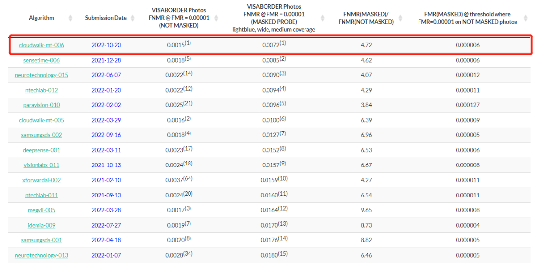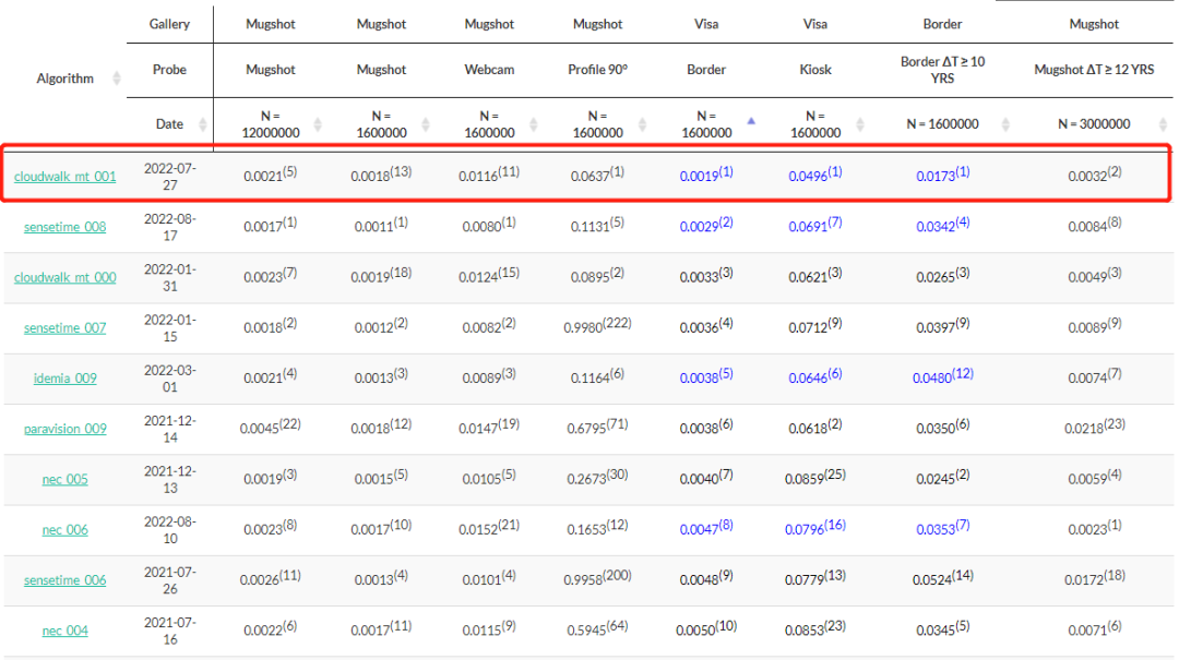 该项测试是全球顶尖科研机构角逐的赛场,测试数据不公开,根据参赛队伍提供的技术进行测验,保证比赛的客观公平。截至目前,全球有近百家公司和研究机构参与了此项测试,包括SAMSUNG(韩国)、TOSHIBA(日本)、VisionLabs(俄罗斯)、Ever AI(美国)、 Vocord(俄罗斯)、云从、美团、海康、大华、腾讯等。