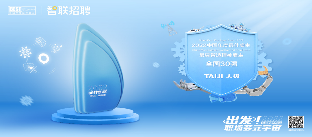 太极股份、新东方、中国广核新能源、凤凰网、理想汽车等30家企业从93426家报名企业中脱颖而出,荣获“2022中国年度最具智造精神雇主奖”,这也是太极股份继2020、2021年后,连续三年荣膺此项称号,体现了太极股份为实现雇主与雇员之间的“双赢”,在人才培养、雇佣关系方面的改革愈发科学、和谐,雇主和雇员的关系正朝着共同合作、双向奔赴的方向演进。