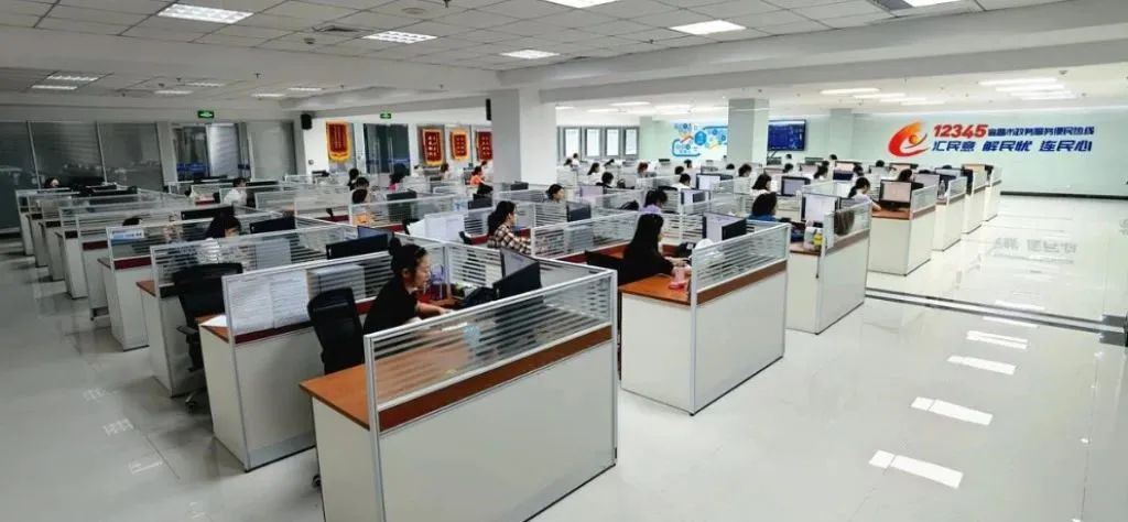 正在忙碌接听市民热线的12345热线处置现场(图片来源:湖北日报)