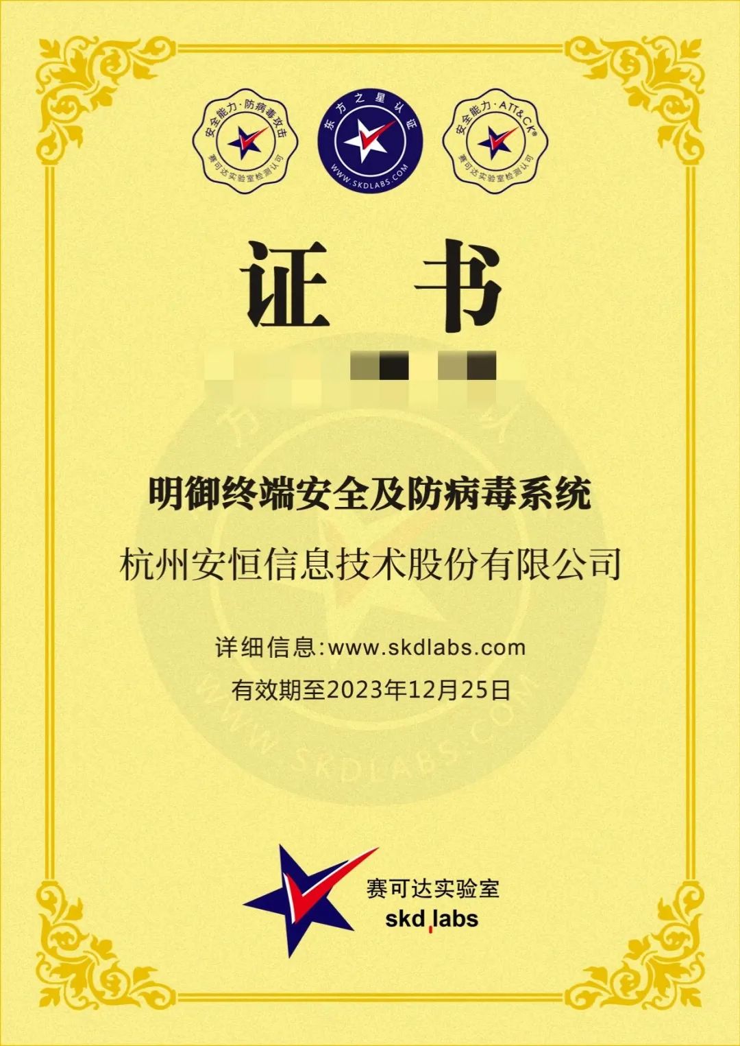 近日,安恒明御终端安全及防病毒系统(以下简称安恒EDR),凭借着出色的产品能力,再次通过国际知名第三方网络信息安全测评认证机构赛可达实验室检测,并荣获“东方之星”证书认证。