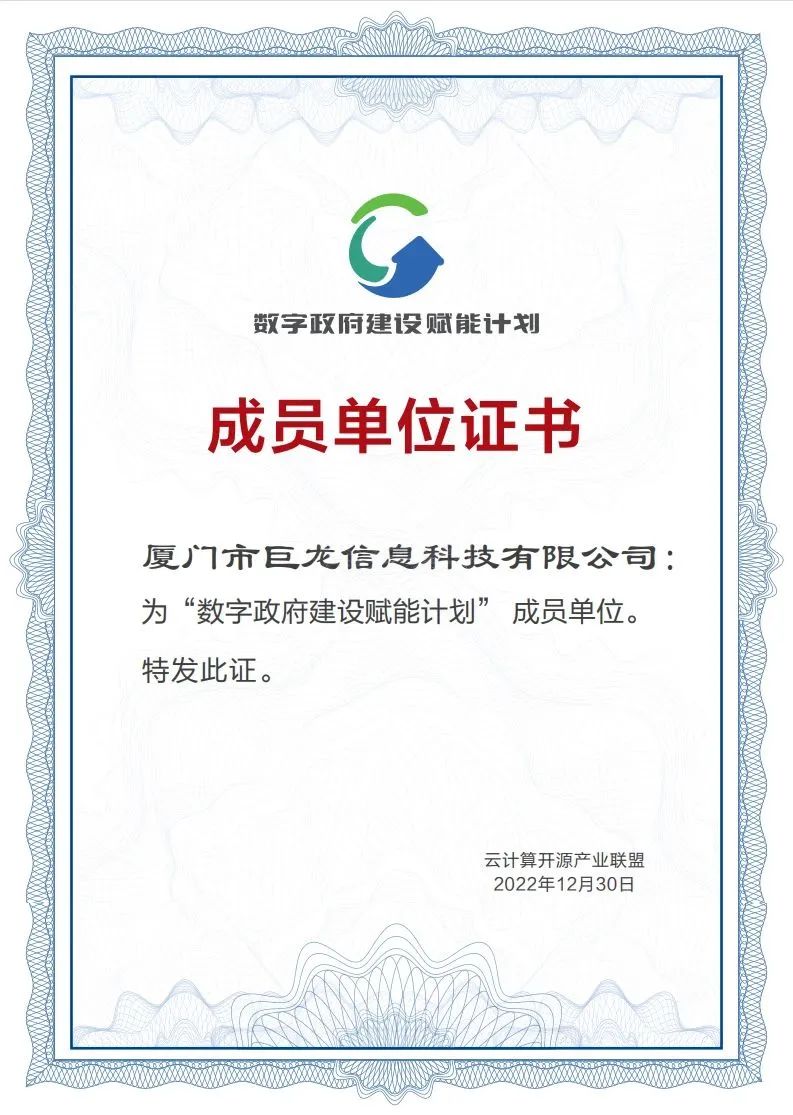 数字政府建设是推进数字中国发展的重要内容,加快数字政府建设,以数字化转型整体驱动生产方式、生活方式和治理方式变革,是推进国家治理体系和治理能力现代化的重要举措。未来,巨龙信息一方面将继续精进技术与服务,为数字政府建设提供更加优质的产品;另一方面将担起推动数字政府发展的社会责任,与其他成员单位合作,一同为夯实数字政府、数字中国的安全防线不懈努力!